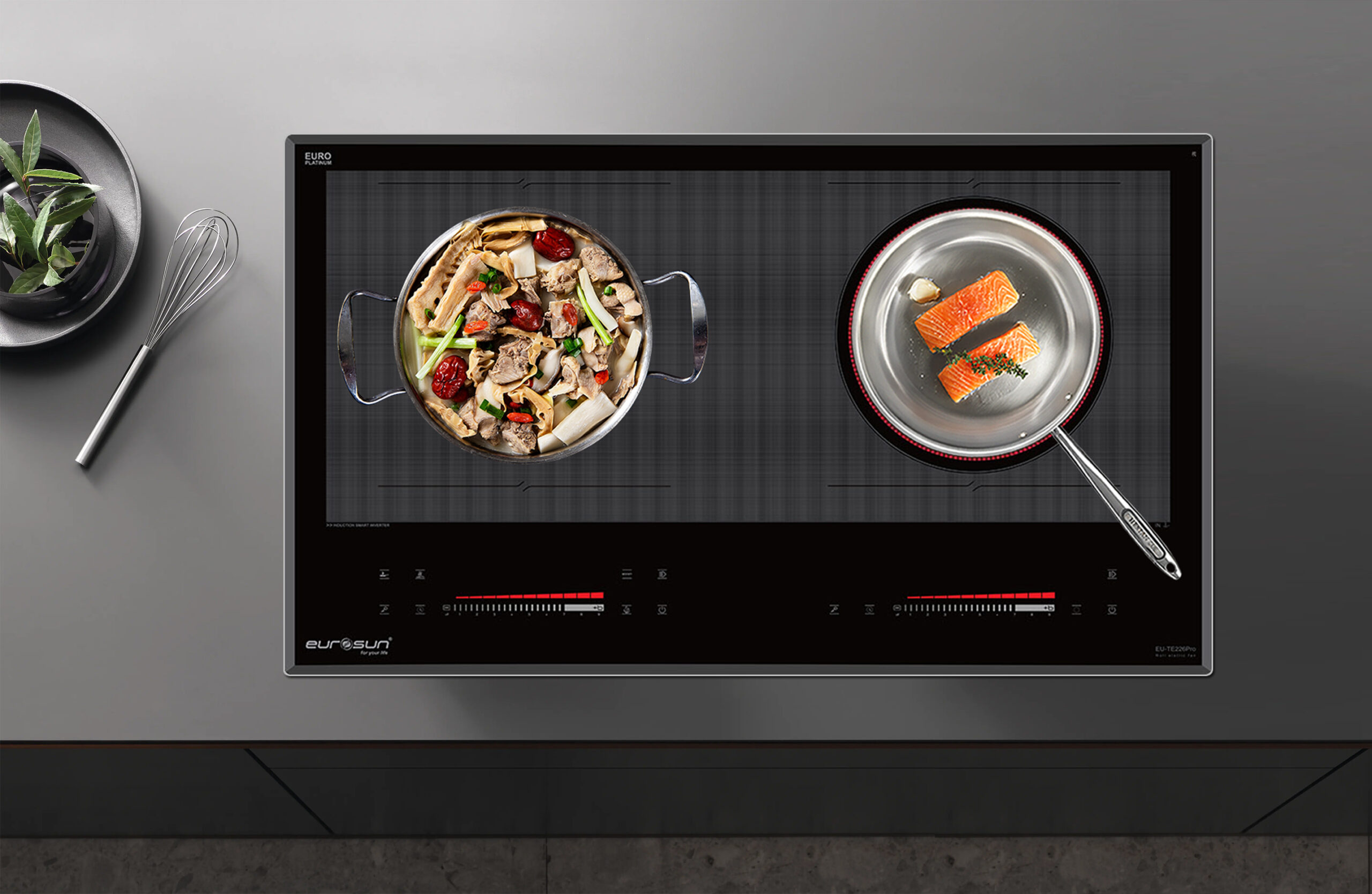Tự động phát hiện vùng nấu và vùng nấu chỉ nóng lên khi có nồi: Các sản phẩm bếp điện từ của Eurosun bao gồm EU-TE226Pro sẽ chỉ khởi động công suất khi nồi được đặt lên vùng nấu, trường hợp chưa đặt nồi khi đã khởi động, bếp sẽ không đóng công suất và cảnh báo mã lỗi không có nồi hoặc nồi không phù hợp.