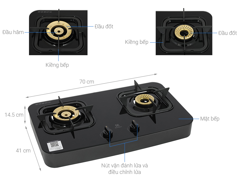 Electrolux ETG7266GKR có đầu đốt bằng đồng bền bỉ giúp nấu nhanh mà không làm đen đáy dụng cụ nấu nướng.