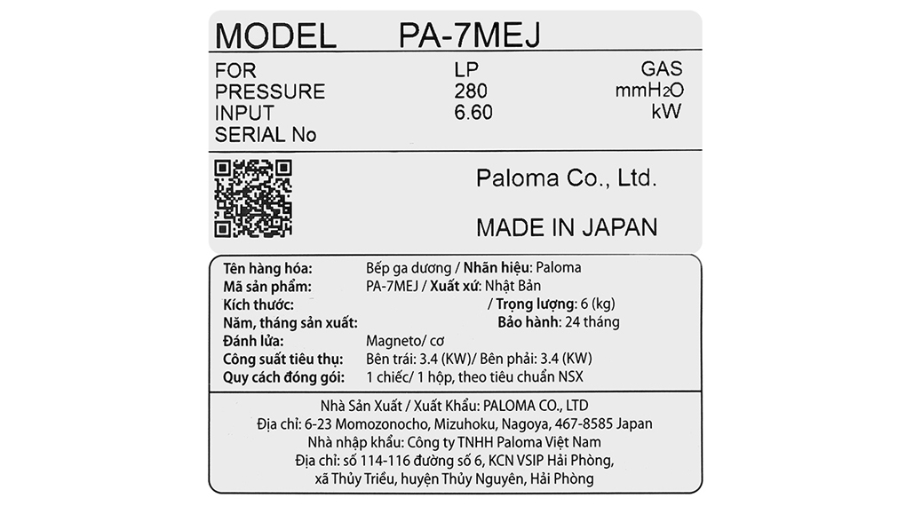 Sản phẩm thương hiệu Paloma – Nhật Bản, sản xuất tại Nhật đáng tin cậy về chất lượng và độ bền.