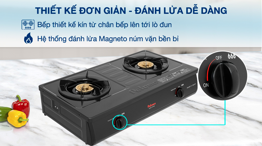 – Bếp ga Paloma sử dụng đầu đốt bằng đồng ít bị ăn mòn cho độ bền cao, hoạt động ổn định, kiểu đầu đốt Eco tiết kiệm ga.
