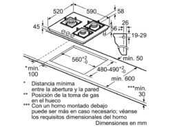 - Vùng nấu nhanh: Vùng nấu bên phải phía trên có công suất 3.000W (phụ thuộc vào gas đang sử dụng).