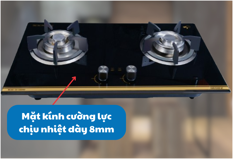 Bếp gas âm kính cao cấp 2 lò nấu GrandX GX GS299D được trang bị kiềng gang đúc chống trượt, bề mặt mài mịn được phủ lớp men mờ kiểu dáng vững chắc theo phong cách Châu Âu. Khay chống tràn làm bằng chất liệu Inox 304 cao cấp chống han gỉ giúp cho bếp luôn được sáng bóng.