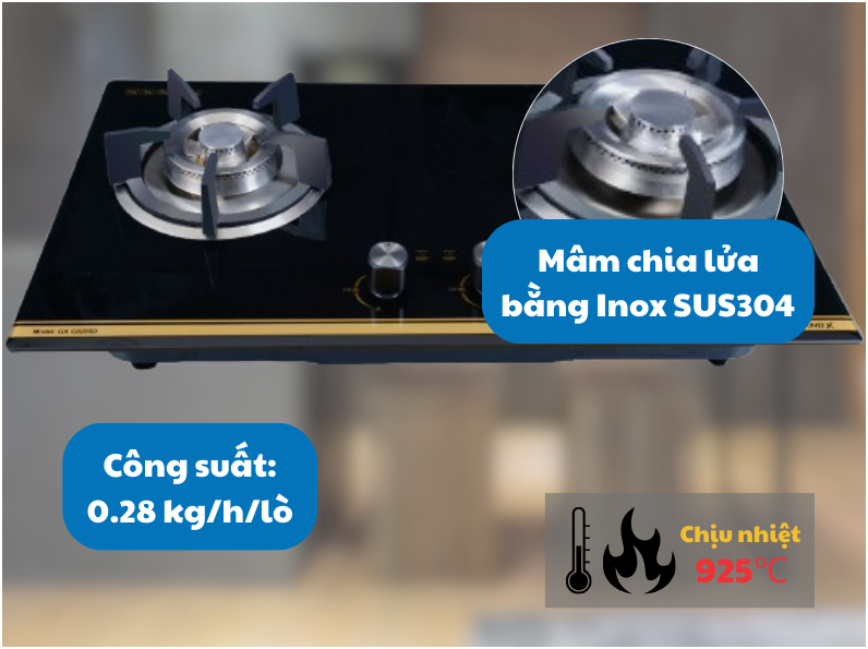 Tiết kiệm nhiên liệu, ngọn lửa xanh: Đầu đốt Inox 304 được thiết kế với nhiều lỗ nhỏ li ti, tạo ra ngọn lửa hồng ngoại bức xạ nhiệt cao, giúp nhiệt lượng tăng lên và tiết kiệm gas khi đun nấu.