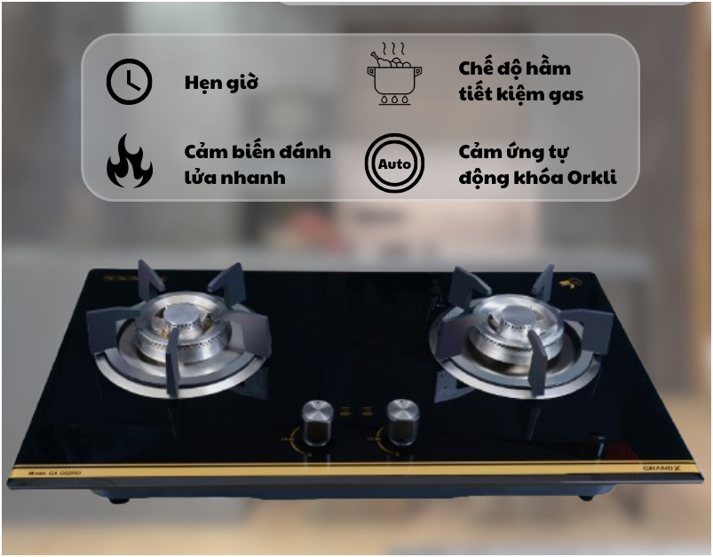 Chức năng cảm biến ngắt gas an toàn: Tất cả các dòng bếp ga âm GrandX được trang bị bộ phận kim ngắt gas an toàn Orkli (Made in Spain) đảm bảo sự an toàn cho người dùng, giúp phòng tránh khi xảy ra sự cố bất thường làm ngọn lửa bị tắt đi nhưng van gas vẫn mở, kim ngắt gas sẽ tự động kích hoạt chức năng và đóng gas lại ngay tức thì, đề phòng trường hợp sau khi ngọn lửa đã tắt nhưng gas vẫn được cấp ra ngoài và được tích tụ lại trong phòng bếp, khi vô tình chúng ta bật thiết bị điện hay có tia lửa sẽ dẫn đến việc cháy nổ đáng tiếc xảy ra.