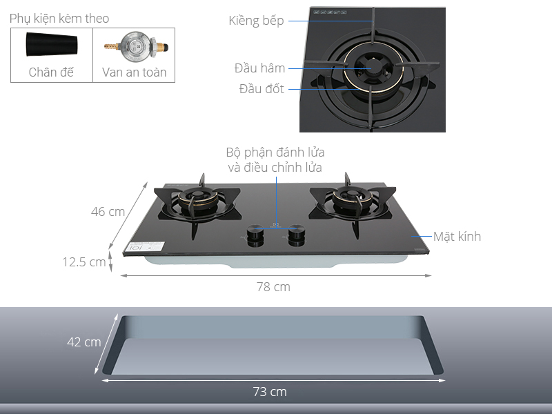 Mặt kính an toàn màu đen dày 8mm, chất liệu kính bền bỉ, có khả năng chịu nhiệt, chịu lực và chống trầy xước tốt. Đồng thời, mặt kính giúp người dùng dễ dàng lau chùi, vệ sinh sau mỗi lần sử dụng.