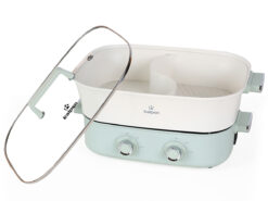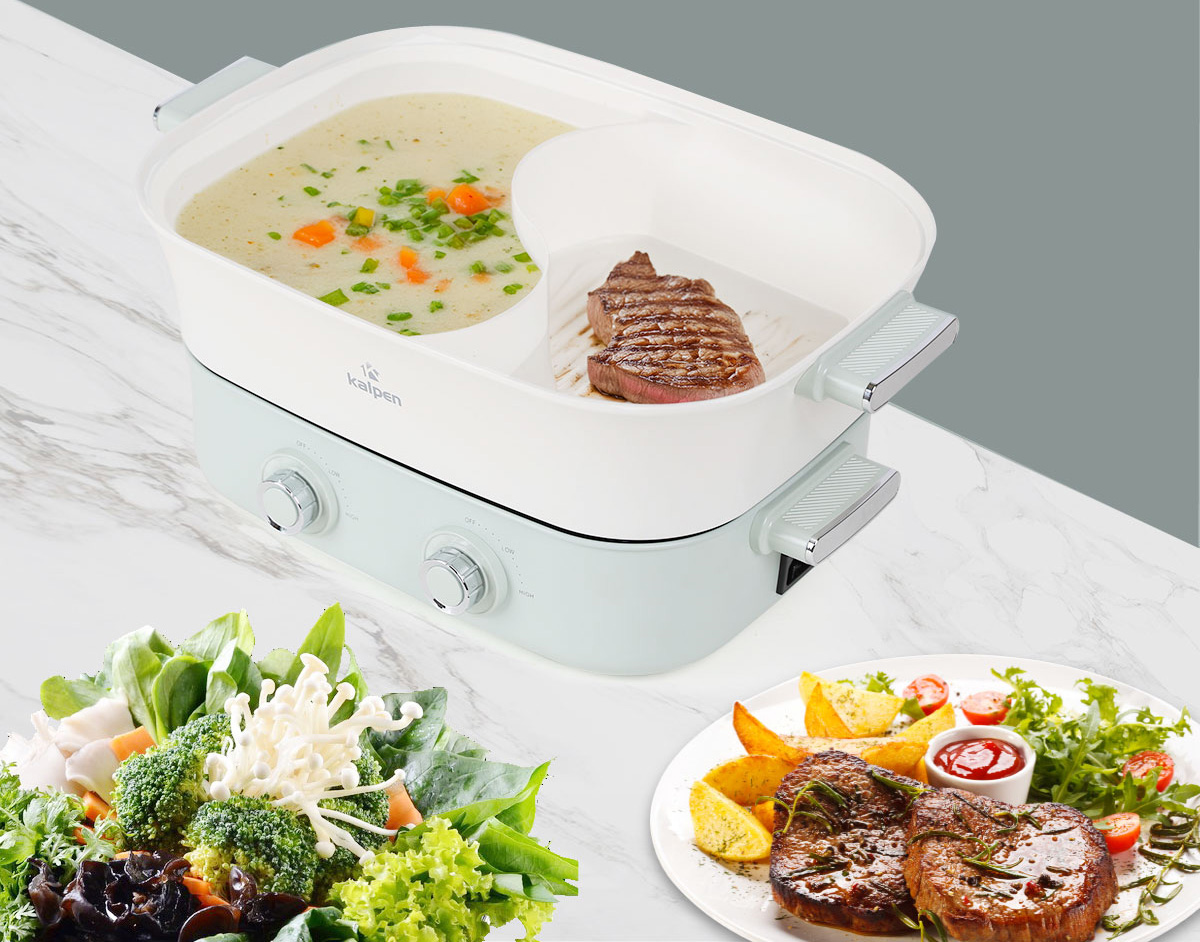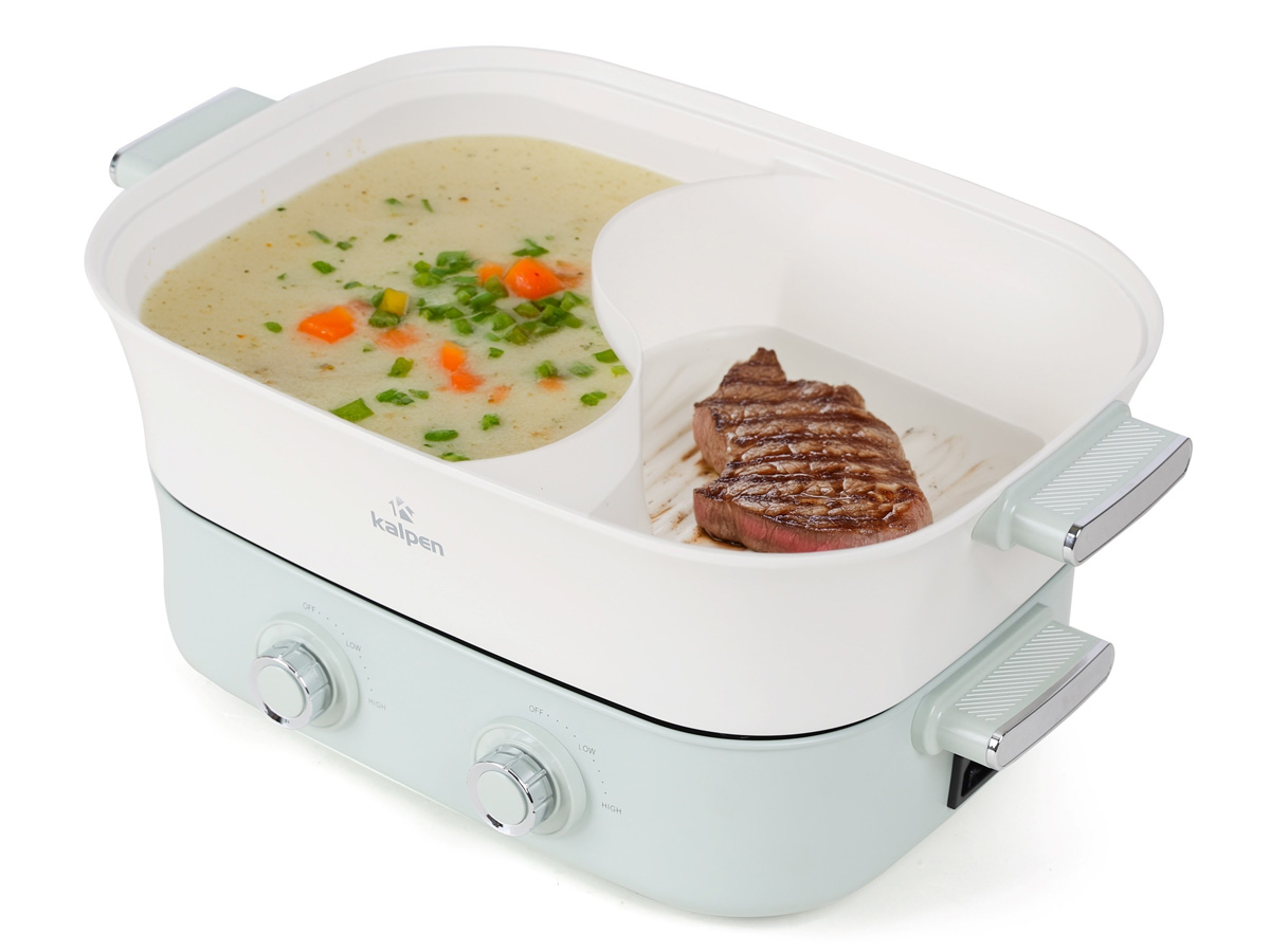 Bếp nướng lẩu Kalpen PP66 là thiết bị đa năng giúp bạn linh hoạt chế biến nhiều món ăn cùng lúc. Với dung tích 6.5L và thiết kế hai ngăn nấu độc lập, bạn có thể dễ dàng nấu hai loại lẩu khác nhau hoặc kết hợp nấu lẩu và nướng đồ ăn, đáp ứng mọi sở thích của các thành viên trong gia đình. Cơ chế điều khiển độc lập cho phép bạn tùy chỉnh nhiệt độ cho từng ngăn, đảm bảo món ăn được chế biến đúng cách.