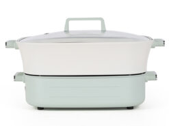 Với gam màu xám trắng và xanh trang nhã, bếp Kalpen PP66 phù hợp với không gian bếp hiện đại. Dù dung tích lớn, thiết kế của bếp vẫn nhỏ gọn, dễ sử dụng trên bàn ăn mà không chiếm quá nhiều diện tích. Vung kính cường lực trong suốt cho phép bạn quan sát thức ăn mà không cần mở nắp.