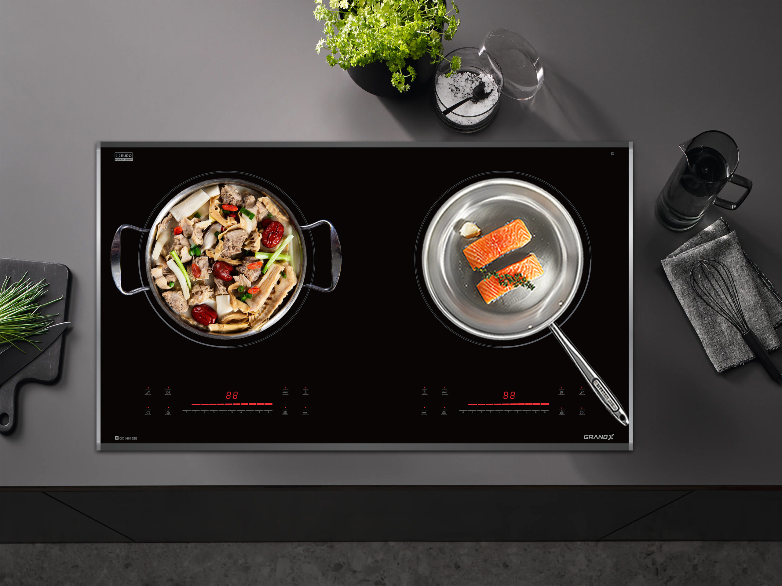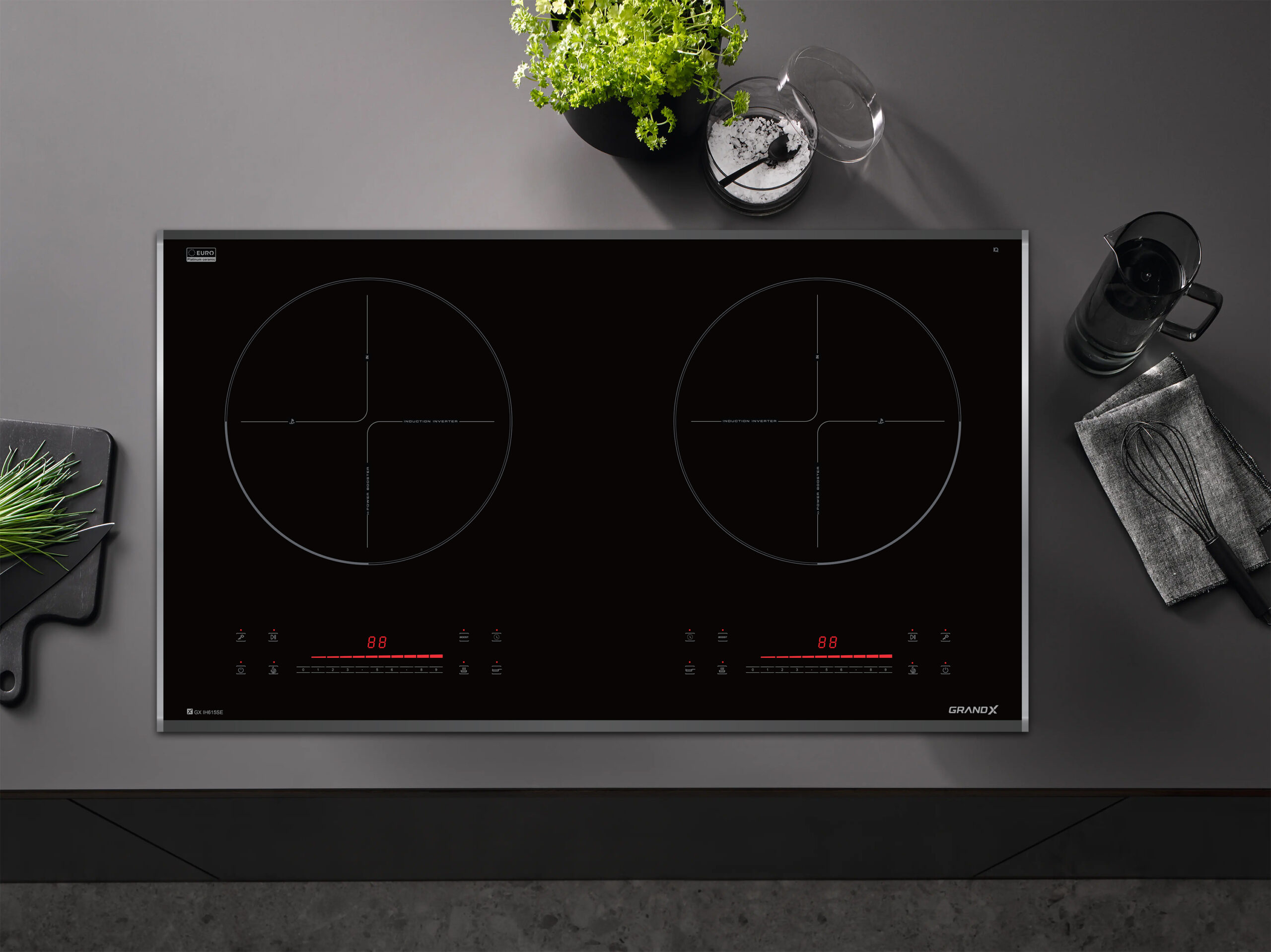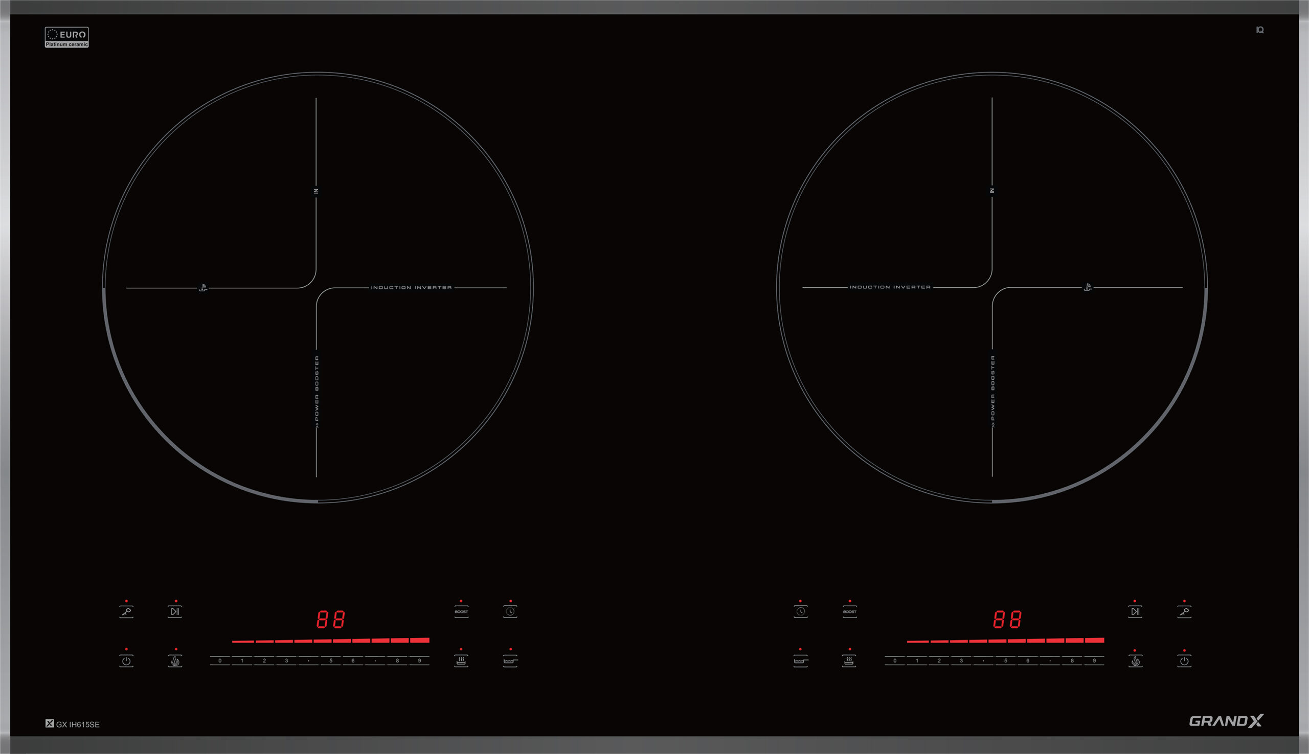 GrandX GX IH615SE trang bị bảng điều khiển cảm ứng với 9 mức công suất cho từng vùng nấu, giúp người dùng dễ dàng lựa chọn mức nhiệt phù hợp với từng món ăn.