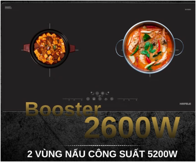 2 vùng nấu công suất 5.2kW, Booster gia nhiệt nhanh