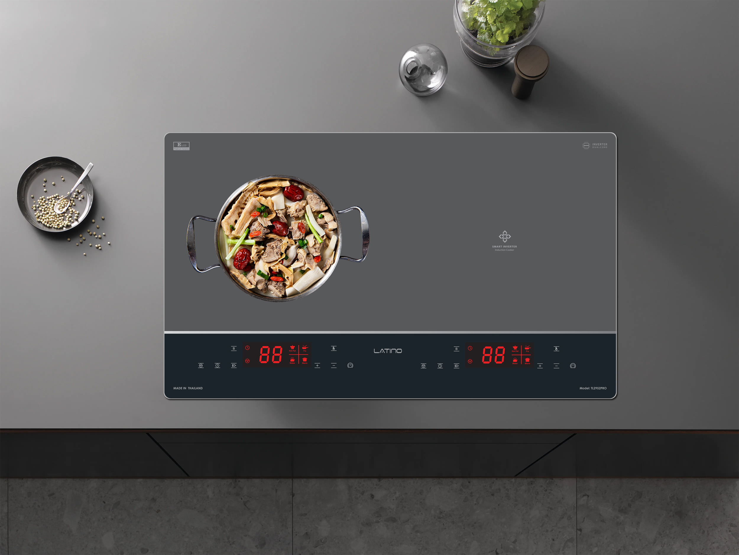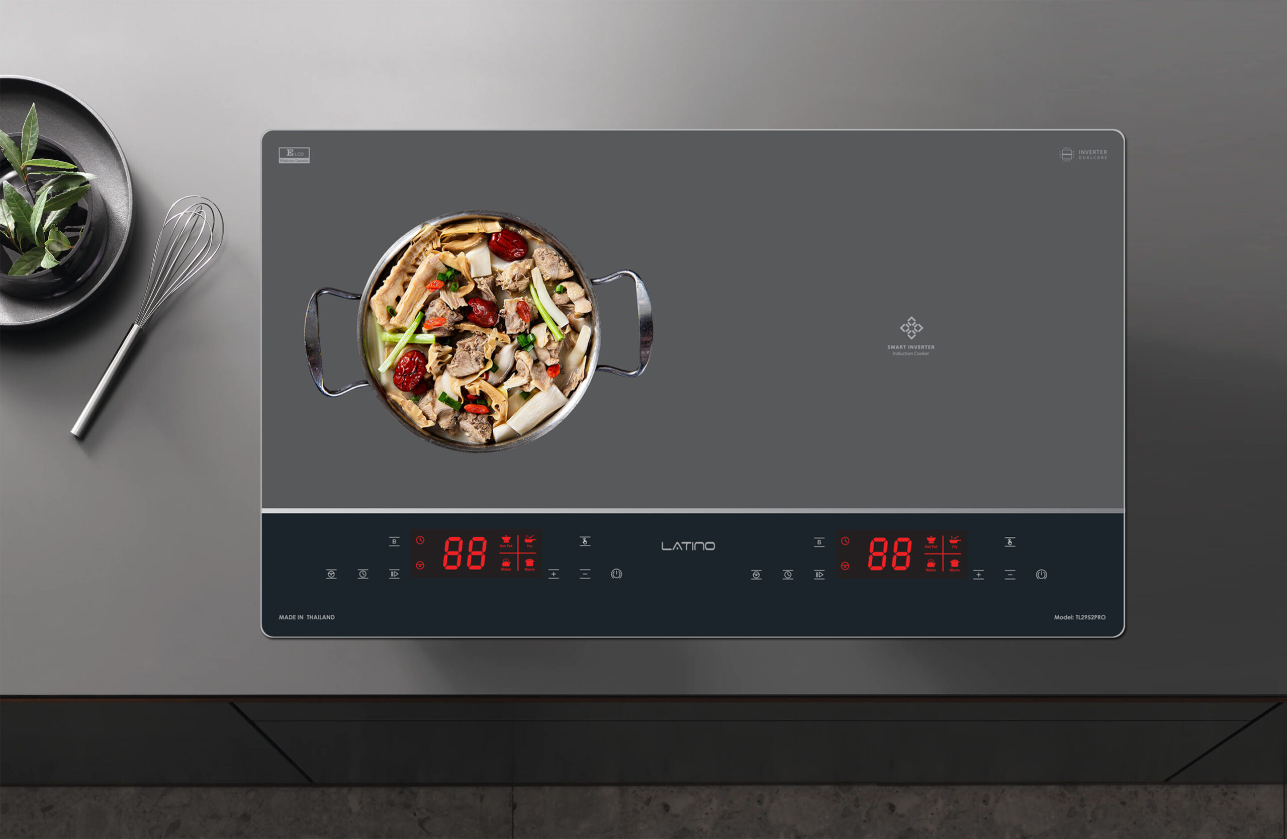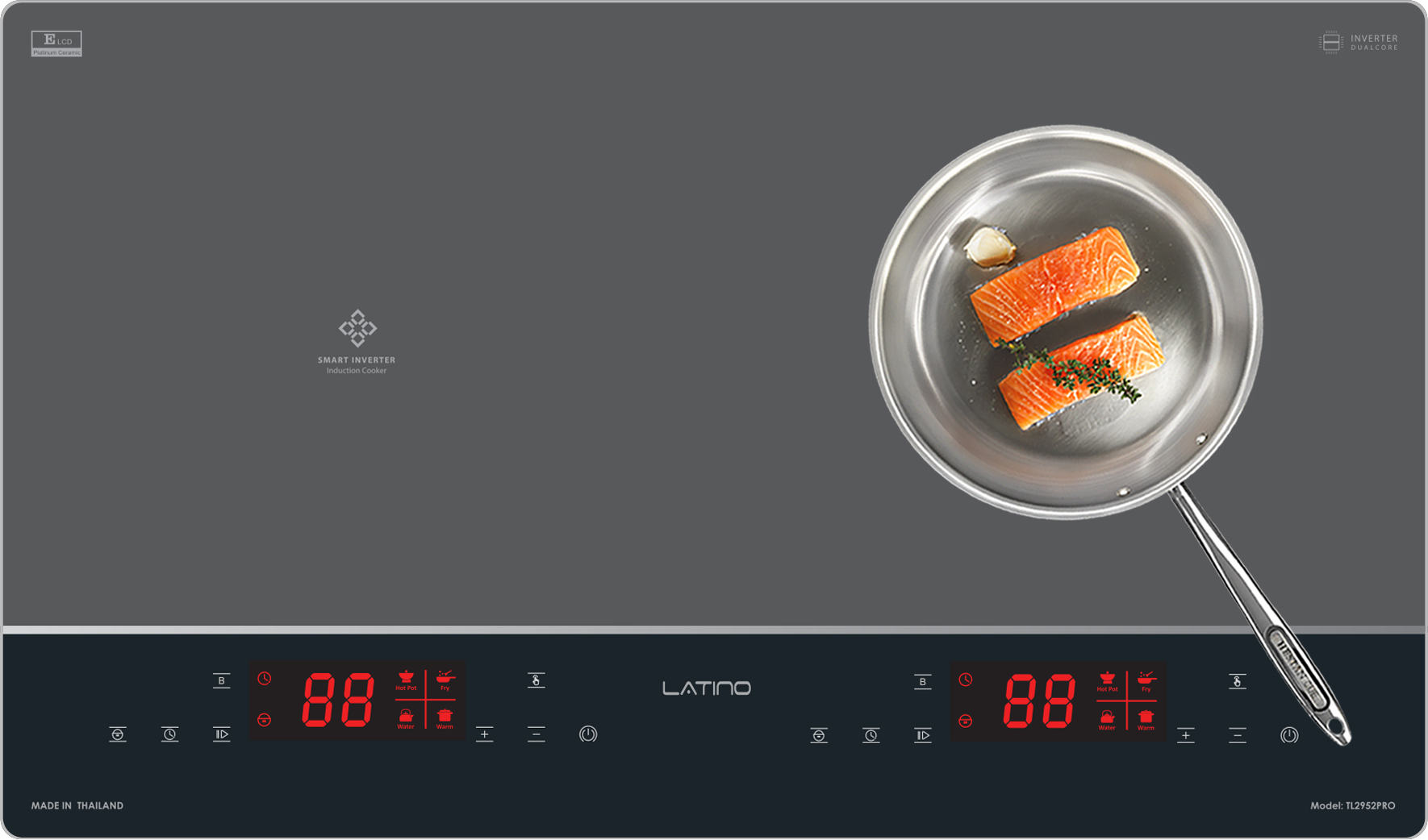 Bếp từ Latino LT-TL2952PRO được tích hợp chức năng tự nhận diện vùng nấu, khi ta đặt nồi lên 1 trong 2 vùng nấu sau đó ấn nút khởi động bếp sau thời gian 1-2 giây bếp sẽ tự động tìm vùng nấu đã có nồi, ta chỉ việc điều chỉnh mức công suất to nhỏ theo ý muốn mà không phải thao tác chọn vùng nấu như bếp thông thường. Công nghệ Inverter được áp dụng trên bếp từ Latino LT-TL2952PRO có khả năng phản ứng thay đổi công suất theo điều khiển ngay tức thì, khi người dùng điều chỉnh tăng giảm nhiệt độ đun nấu, bếp điều chỉnh thay đổi tức thì về mức nhiệt độ mong muốn.