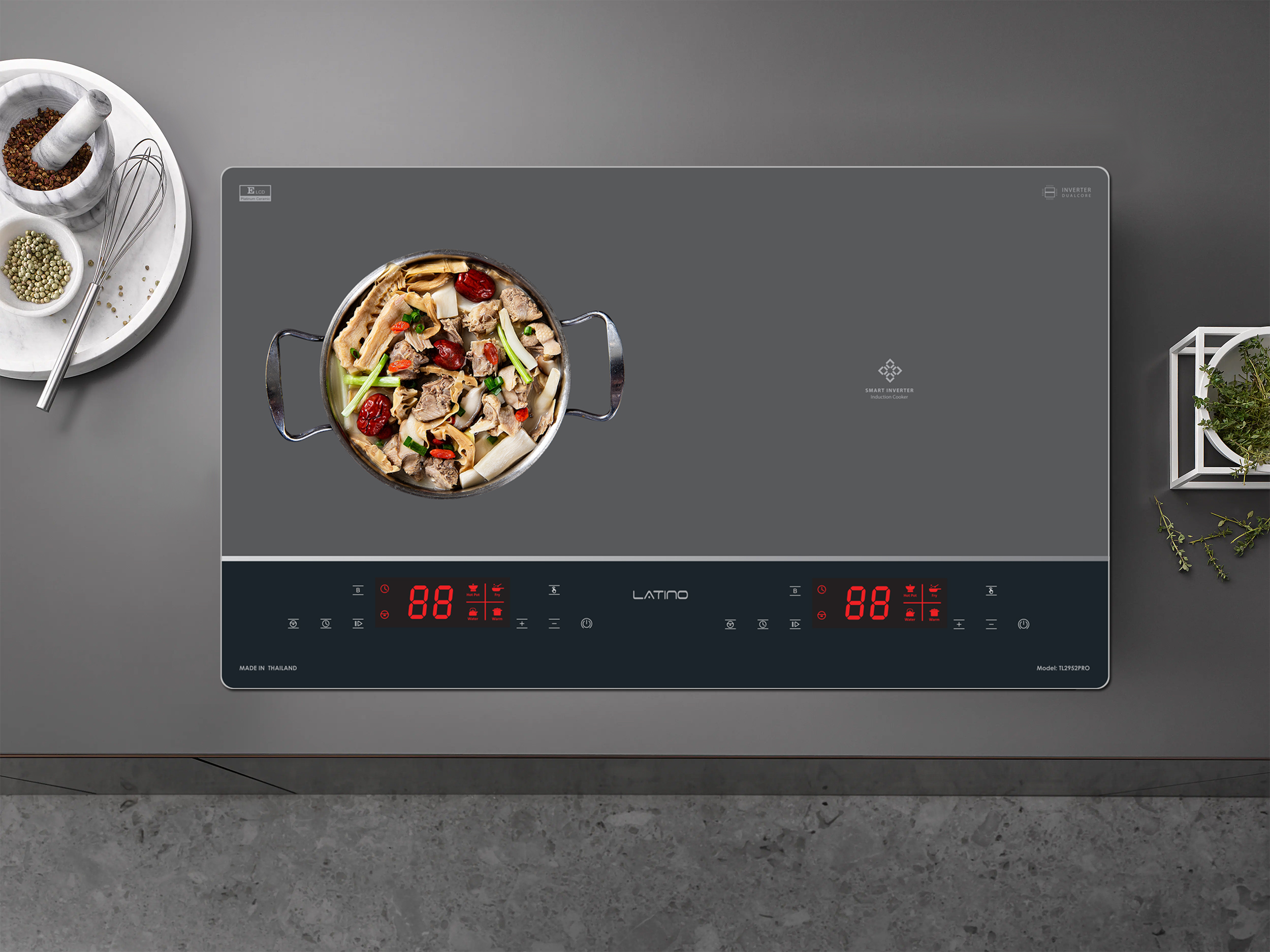 Chức năng ủ ấm “hâm nóng” nhiều cấp độ – Warming: Với công nghệ biến tần Inverter vượt trội, bếp từ Latino LT-TL2952PRO có khả năng ủ ấm ở nhiệt độ nhất định, chức năng ủ ấm được lập trình giữ mức nhiệt độ ổn định giúp chúng ta duy trì nhiệt cho thức ăn luôn nóng mà không bị nguội đi phải đun lại nhiều lần làm giảm chất dinh dưỡng trong thức ăn, đặc biệt về mùa đông thời tiết lạnh.