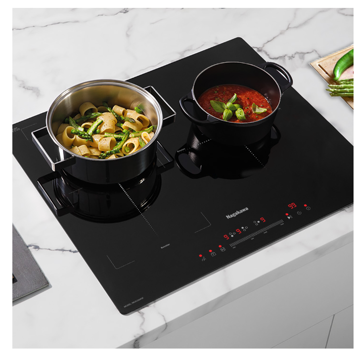Nhờ công nghệ nấu đa điểm Flexi Zone, bếp điện từ thông minh Nagakawa NK3C05MSF kết hợp nhiều mâm từ hoạt động tạo hiệu năng mạnh mẽ, kiểm soát tốt các chức năng nấu nướng và tiết kiệm thời gian cho bạn.