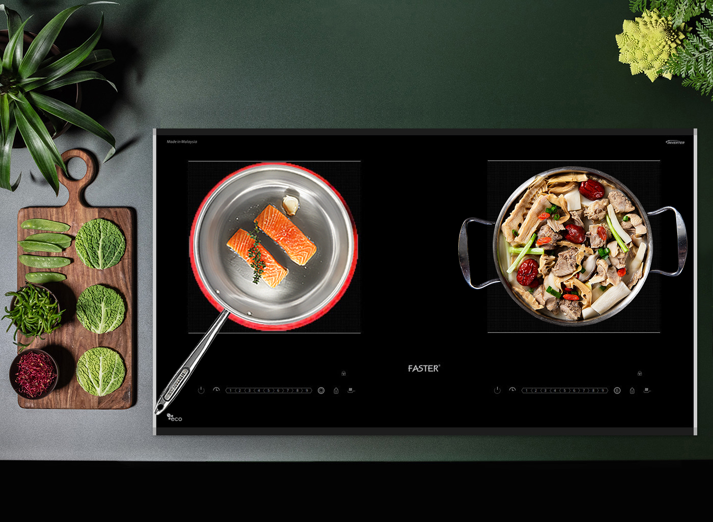 Bếp điện từ Faster FS 782HI Pro gồm 2 vùng nấu với tổng công suất 4500W. Vùng nấu hồng ngoại trái trang bị mâm nhiệt Hi-light 02 vòng nhiệt có công suất là 900-2200W. Vùng nấu từ phải có công suất là 1800W khi kích hoạt tính năng nấu nhanh Booster công suất lên tới 2300W. Chỉ trong chốc lát sau khi kích hoạt tính năng này, nhiệt lượng trên vùng nấu từ tăng lên công suất tương đương với mức nhiệt lượng lớn nhất. Do đó, các món ăn được nấu chín nhanh hơn, tiết kiệm thời gian vào bếp cho chị em nội trợ. Chức năng Booster nấu siêu nhanh, tuy nhiên thời gian tối đa mặc định dùng chức năng này là 10 phút/lần tránh quá tải.