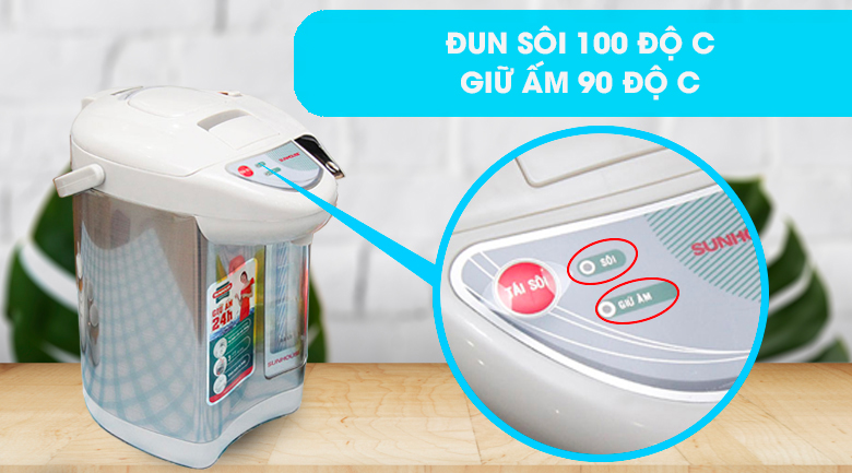 Bình thủy điện có thể đun sôi ở mức nhiệt 100°C và giữ ấm nước ở 90°C