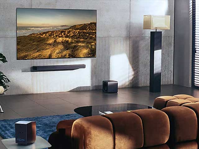 Một trong những tính năng đáng chú ý của loa thanh Samsung HW-Q990F là công nghệ Q-Symphony giúp loa thanh đồng bộ hóa tối đa với loa của TV thông qua AI.