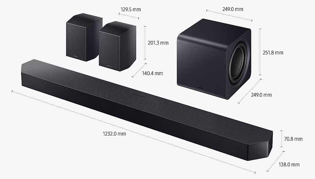 Loa Soundbar Samsung HW-Q990F có thiết kế tinh tế với mặt loa thanh được làm bằng chất liệu cao cấp, vừa vặn với mọi không gian.