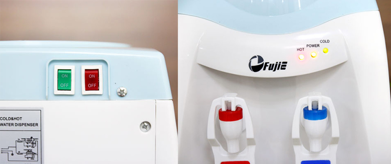 Có hai công tắc khởi động nấu nước nóng và làm lạnh nước, bạn có thể bật hoặc tắt chế độ nóng/lạnh nếu muốn, giúp tiết kiệm điện khi không cần sử dụng nước nóng/lạnh. Sau khi nhấn vào công tắc, nước sẽ được làm nóng, làm lạnh và khi quá trình hoàn tất, cây nước chuyển sang chế độ giữ nhiệt. Tích hợp đèn Led hiển thị chế độ nước nóng, lạnh thuận tiện cho việc quan sát.