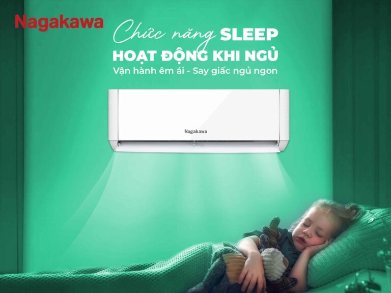 Chức năng Sleep giúp máy vận hành êm ái và nhẹ nhàng, khi kích hoạt nút Sleep ở chế độ làm lạnh hoặc sưởi ấm, nhiệt độ cài đặt sẽ tự động tăng/giảm đi 1 độ C sau 1 giờ hoạt động, liên tiếp trong 2 giờ đầu để mang lại môi trường thoải mái nhất khi ngủ.