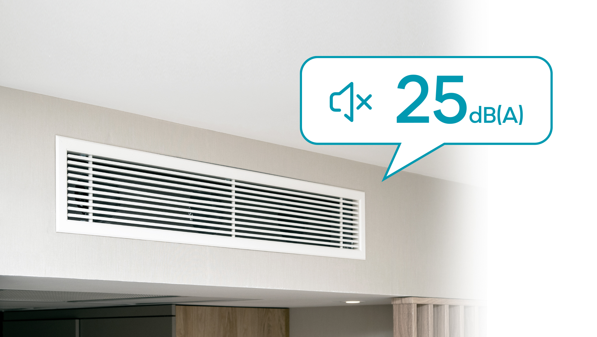 Độ ồn của dàn lạnh dấu trần nối ống gió ở chế độ hoạt động yên tĩnh chỉ từ 25 dB(A), phù hợp cho các khách sạn, biệt thự và căn hộ cao cấp.