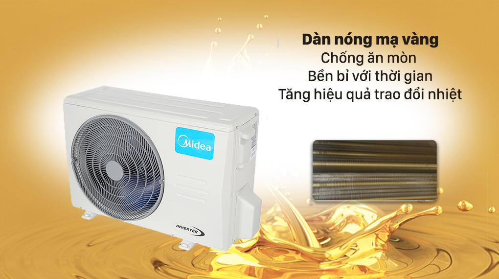 Với thiết kế tản nhiệt mạ vàng, dàn nóng của máy lạnh sẽ được bảo vệ trước các tác nhân ăn mòn trong môi trường như axit ăn mòn, bụi bẩn và gió mang nồng độ muối cao ở khu vực gần biển. Ngoài ra, còn giúp dàn nóng gia tăng hiệu quả trao đổi nhiệt, giúp việc làm lạnh, sưởi ấm của máy tốt hơn.