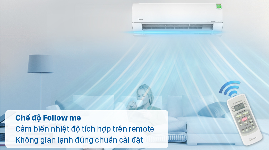 Với tính năng Follow Me, máy lạnh sẽ tự cảm nhận nhiệt độ xung quanh thông qua cảm biến nhiệt độ tích hợp trên remote, từ đó điều chỉnh công suất hoạt động sao cho nhiệt độ của khu vực này phù hợp nhất với nhiệt độ cài đặt, giúp bạn có được cảm giác thư giãn với luồng khí lạnh bao quanh.