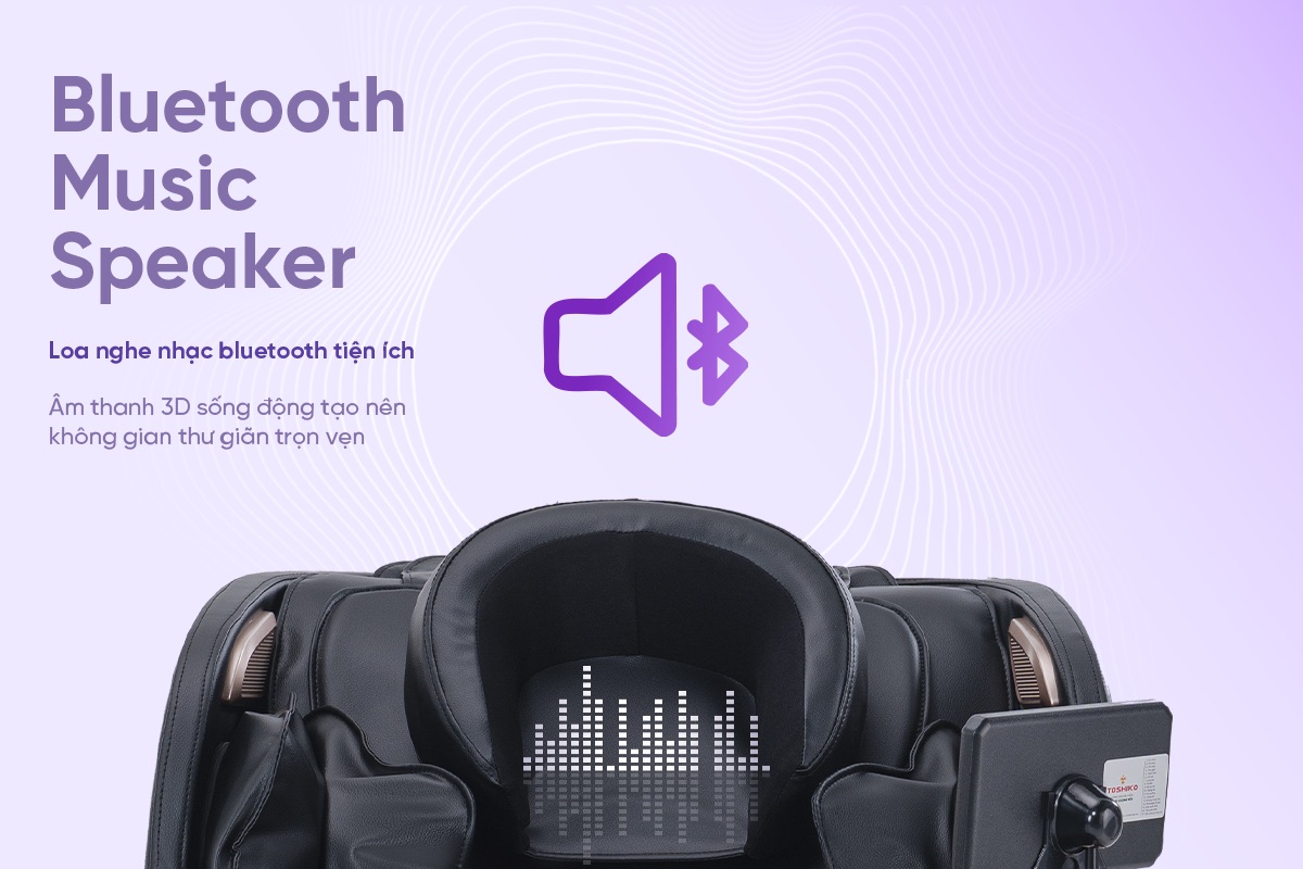 T82 được trang bị hệ thống loa thông minh, cho phép kết nối Bluetooth với smartphone để phát nhạc trong lúc massage. Âm thanh 3D sống động tạo nên không gian thư giãn trọn vẹn, vừa trị liệu thể chất vừa nuôi dưỡng sức khỏe tinh thần.