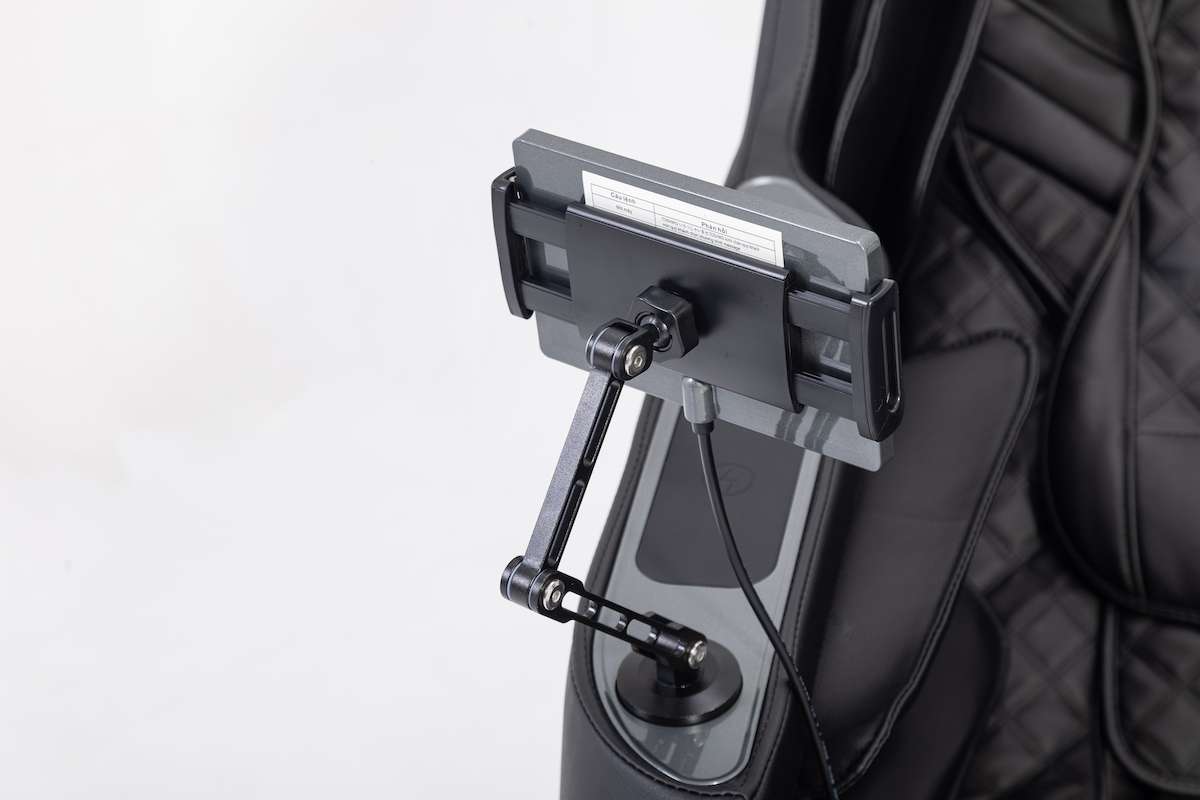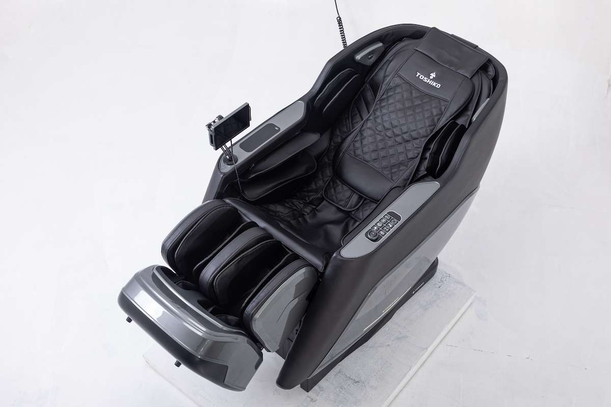 Ghế massage Toshiko T89 Pro tích hợp sạc không dây chuẩn Qi, cho phép sạc điện thoại nhanh chóng mà không cần dây cáp rườm rà, giúp người dùng luôn có thể theo dõi các thông báo, tin nhắn, cuộc gọi quan trọng trong suốt quá trình thư giãn.