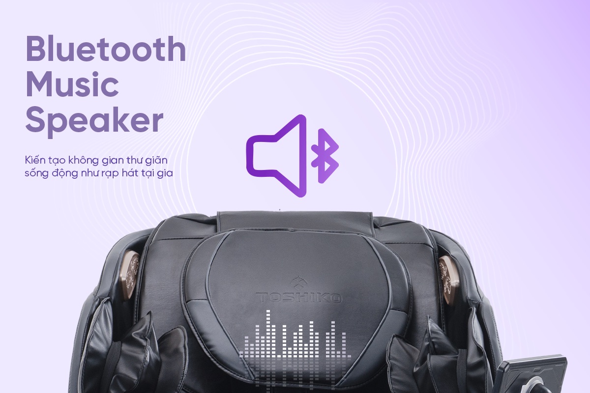 Tích hợp loa Bluetooth chất lượng cao tích hợp ngay đầu ghế, Toshiko T86 Pro tạo không gian thư giãn sống động như rạp hát tại gia. Bạn có thể vừa massage vừa nghe bản nhạc mình yêu thích, giúp giảm stress, nâng cao tinh thần và kéo dài hiệu quả trị liệu.