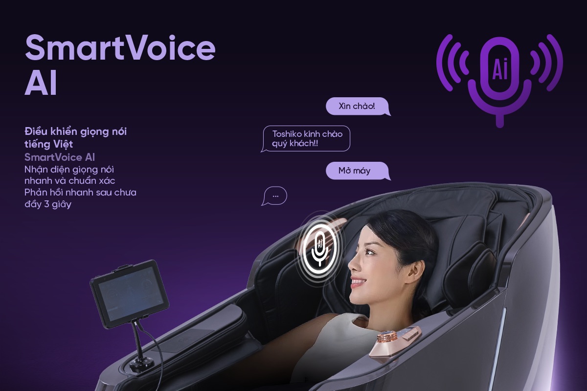 Chỉ cần nói “bắt đầu massage” hoặc “nghiêng ghế”, ghế sẽ tự động thực hiện. Hệ thống nhận diện giọng nói tiếng Việt 3 miền, phản hồi sau chưa đầy 3 giây – thân thiện với người lớn tuổi hoặc người kém thị lực.