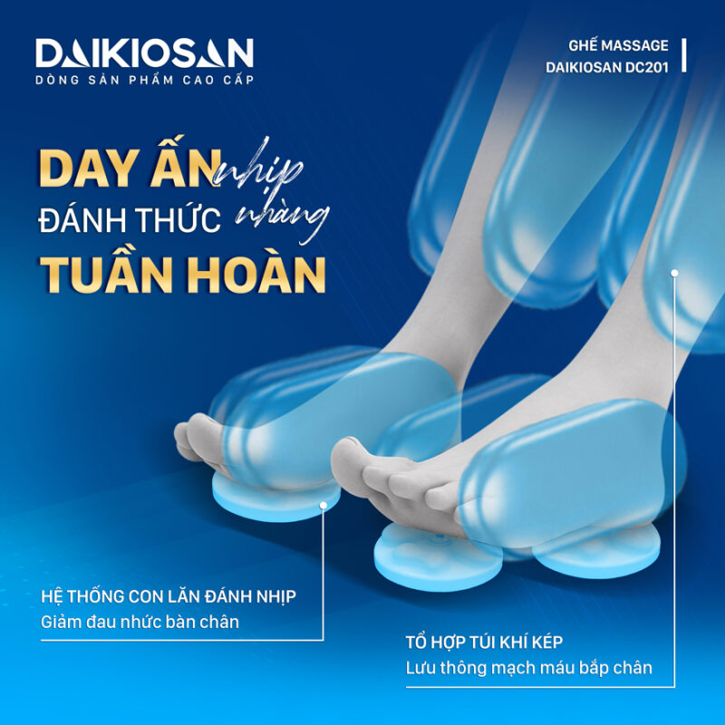 DC201 tích hợp công nghệ massage day chuyên sâu vùng bắp chân, mang lại cảm giác như được đôi tay thật xoa bóp, day ấn đều đặn.
