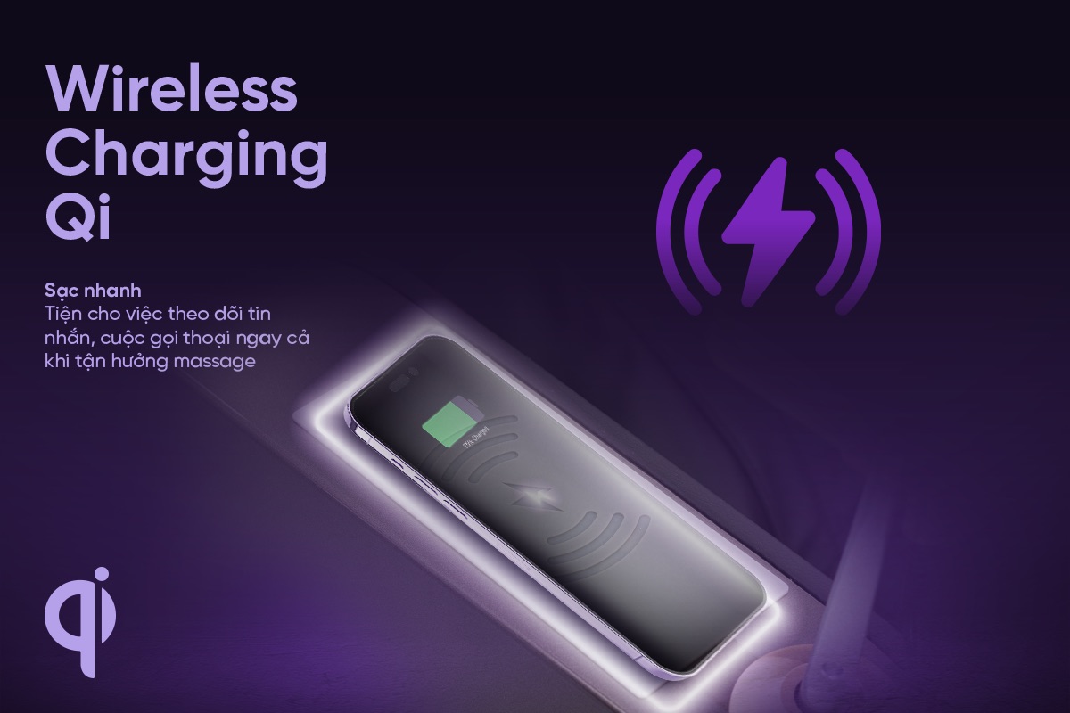 Ngoài ra, tính năng sạc không dây ngay trên tay ghế giúp người dùng nạp pin cho smartphone dễ dàng mà không cần rời khỏi ghế, theo dõi cuộc gọi, tin nhắn dễ dàng ngay cả khi đang tận hưởng massage.