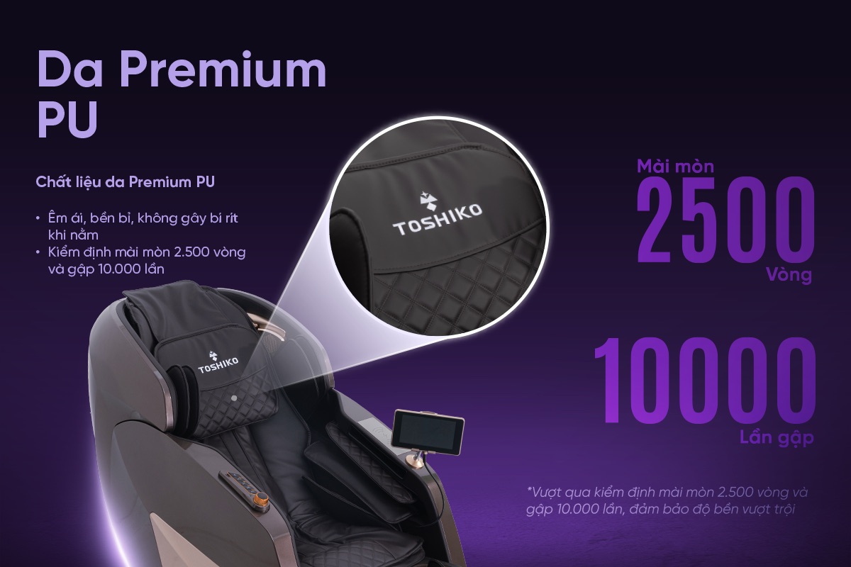 Chất liệu da Premium PU – Êm mịn, bền bỉ, không gây bí rít