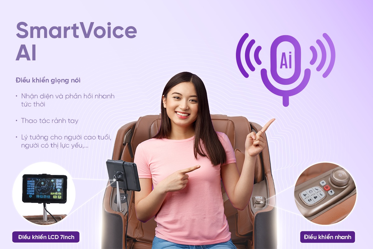 Toshiko T90 tích hợp công nghệ nhận diện giọng nói tiếng Việt thế hệ mới SmartVoice AI, được lập trình thông minh, cho khả năng nhận lệnh chính xác trên 90%. Người dùng chỉ cần nói các câu lệnh đơn giản như “khởi động” hay “tắt máy” mà không cần thao tác trực tiếp trên bảng điều khiển hoặc thân ghế. Hệ thống phản hồi cực nhanh, trong vòng chưa đến 3 giây, mang đến trải nghiệm điều khiển tự nhiên – tiện lợi – thân thiện với người cao tuổi.