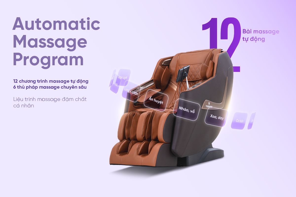 12 chương trình massage trị liệu tự động – 6 thủ pháp massage chuyên sâu