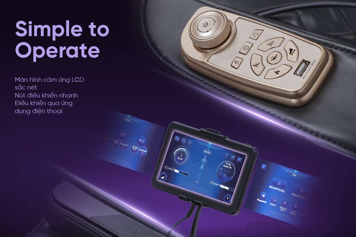 - Điều khiển qua ứng dụng điện thoại, theo dõi trực quan các chương trình massage, điều chỉnh tiện lợi không cần thao tác trên ghế.