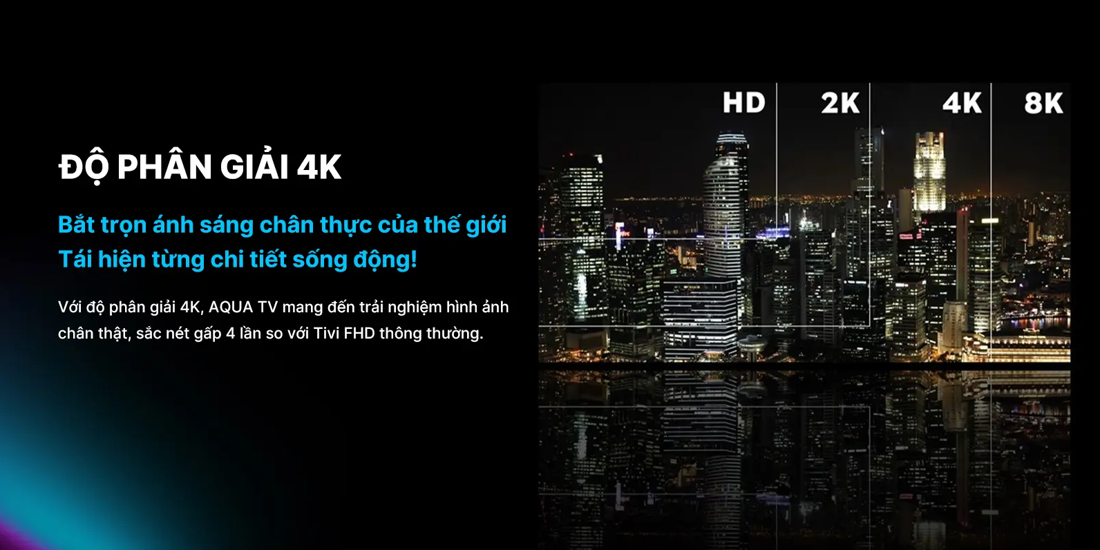 Với độ phân giải 4K, hình ảnh hiển thị rõ ràng và sắc nét, ngay cả khi xem ở khoảng cách gần. Bộ xử lý ARM Quad Core 1.5 GHz tối ưu chất lượng hình ảnh, giảm hiện tượng nhòe hay răng cưa ở các nguồn phát độ phân giải thấp.