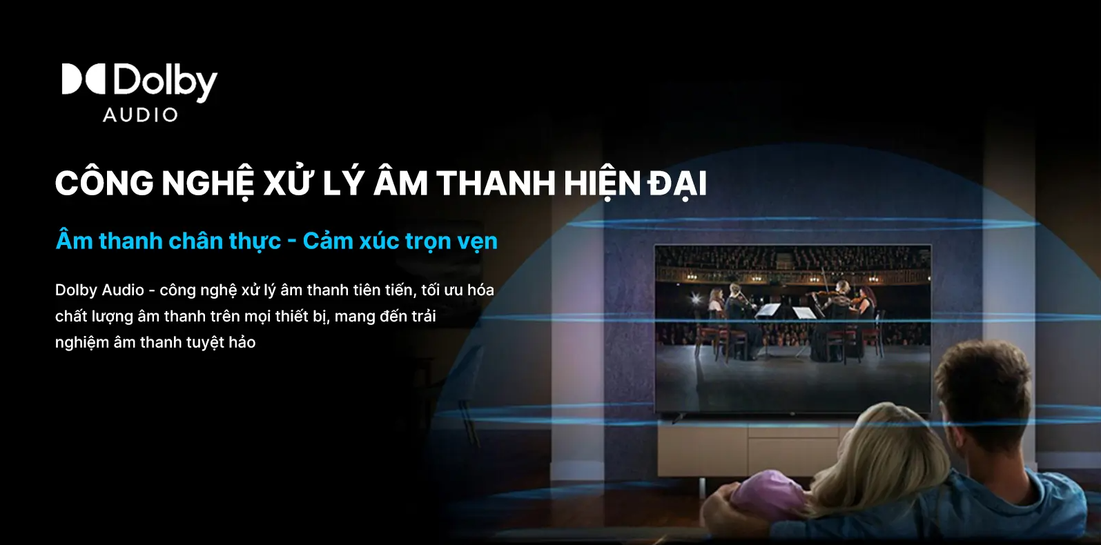 Về chất lượng âm thanh, tivi sở hữu 2 loa với tổng công suất 24W, tích hợp công nghệ âm thanh Dolby Digital và dbx-tv, giả lập hiệu ứng âm thanh vòm, giúp nội dung sống động hơn.