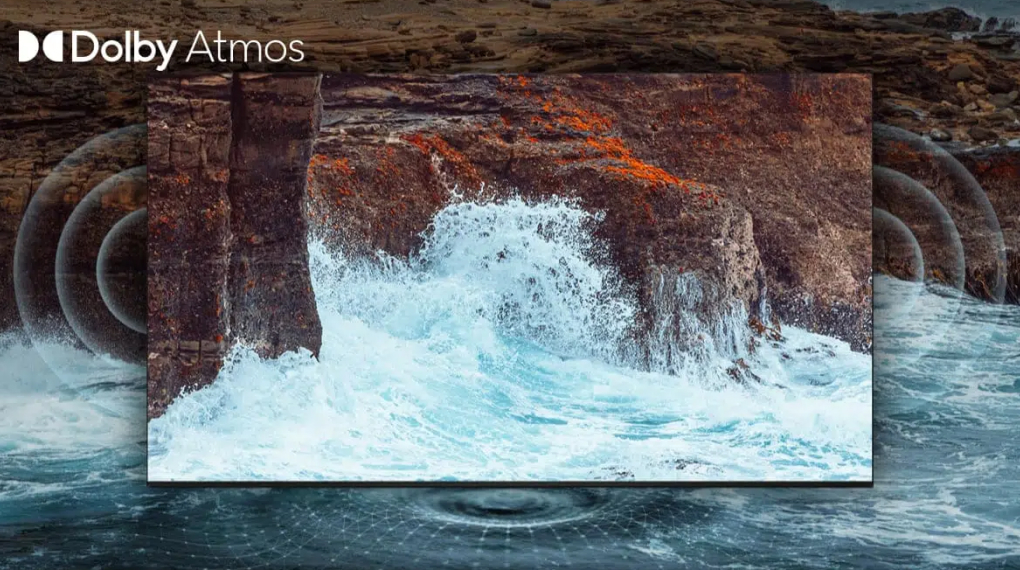 – Công nghệ Dolby Atmos, đây là chuẩn âm thanh cao cấp nhất trên các dòng tivi hiện nay. Công nghệ này có khả năng phát ra mọi âm thanh của từng vật thể trong cùng 1 cảnh tại 1 thời điểm với không gian âm thanh đa chiều sống động (lên đến 128 loại âm thanh khác nhau), mang đến trải nghiệm âm thanh mạnh mẽ như đang trôi xung quanh bạn, thậm chí cả vùng không gian phía trên đầu, cho bạn trải nghiệm điện ảnh thực sự.