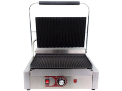 Trên bề mặt nướng thiết kế rãnh sẽ hạn chế dầu mỡ và ngăn thức ăn dính vào mặt nướng. Khay hứng dầu mỡ giúp việc vệ sinh máy tiện lợi hơn.
