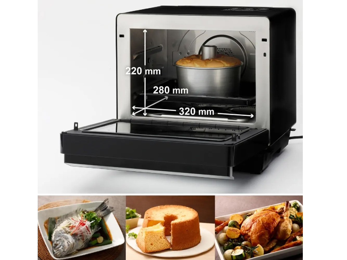 - Công suất lò 1.200W giúp hấp thực phẩm hay chiên thực phẩm nhanh chín