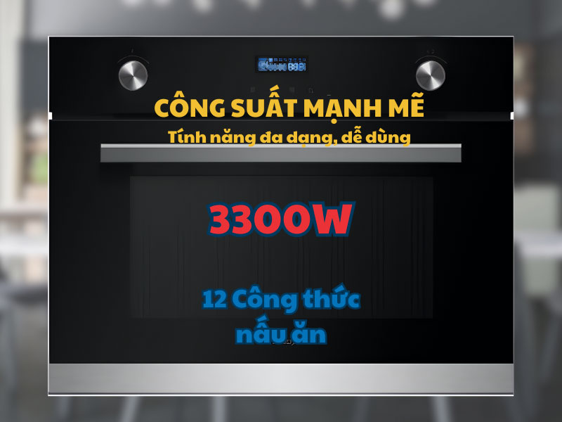 Lò có công suất vi sóng 900W, công suất nướng thông thường 1.200W và nướng đối lưu lên đến 1.750W sẽ cho phép nấu chín nhanh, đều và giữ được độ ngon của thực phẩm. Lò có tổng công suất tối đa 3.300W giúp máy vận hành mạnh mẽ nhưng vẫn tiết kiệm điện nhờ tiêu chuẩn năng lượng Châu Âu A++. Đây là lựa chọn phù hợp cho gia đình đông người hoặc những ai đam mê nấu ăn, muốn tiết kiệm thời gian.
