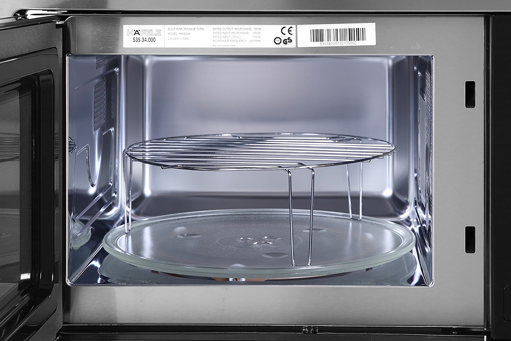 Thuộc mẫu lò vi sóng có nướng, lò vi sóng Hafele HM-B38A | 535.34.000 được trang bị đầy đủ các phụ kiện gồm vòng xoay, đĩa xoay và giá nướng giúp bạn chế biến thực phẩm thuận tiện hơn, thức ăn chính nhanh, đều hơn. Đặc biệt, đĩa xoay còn được làm bằng chất liệu thủy tinh có khả năng chịu lực, chịu nhiệt tốt. Nhờ đó, bạn có thể an tâm sử dụng mà không lo đĩa bị nứt, vỡ hoặc xảy ra các vấn đề không an toàn.