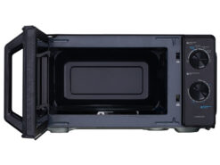Lò vi sóng có kích thước nhỏ gọn (446 x 241 x 343 mm) và màu đen sang trọng, dễ dàng kết hợp với các thiết bị gia dụng khác trong bếp, đồng thời tiết kiệm không gian.