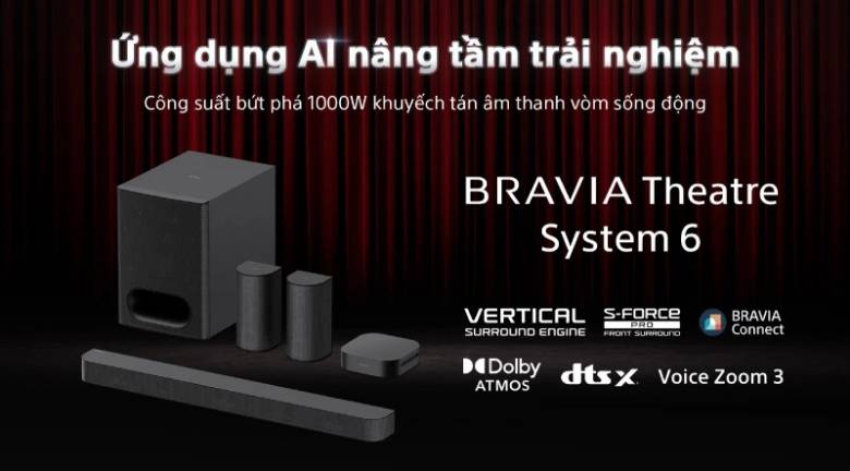 - Truyền hình: Kênh trung tâm riêng đảm bảo lời thoại rõ ràng. Khi kết hợp TV BRAVIA, công nghệ Voice Zoom 3 tăng cường giọng nói bằng AI.