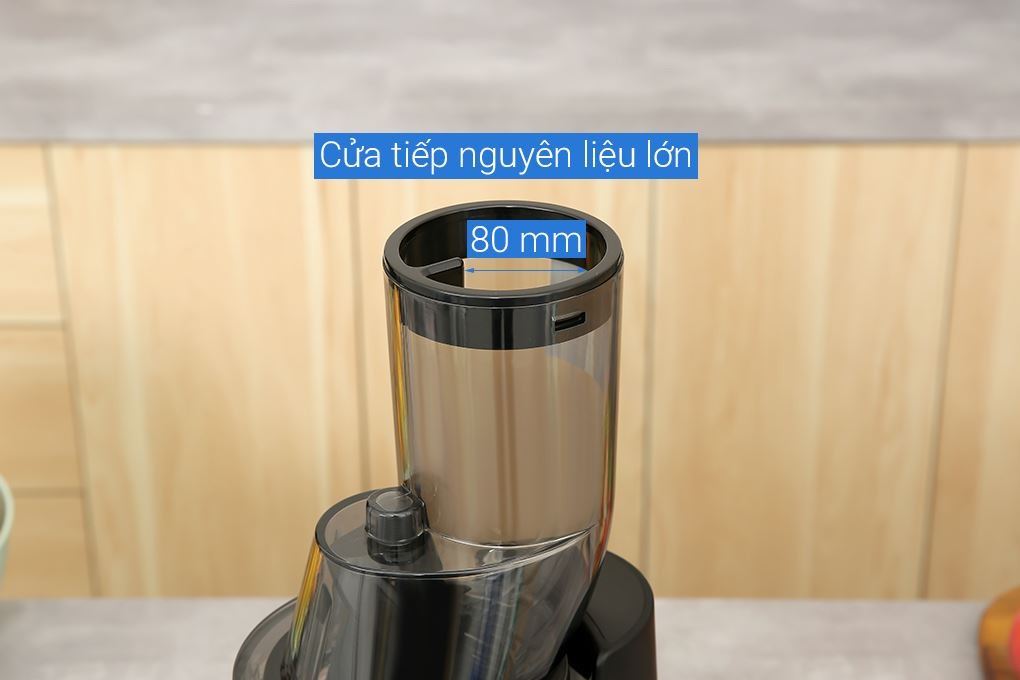 Máy ép BlueStone sở hữu ống tiếp nguyên liệu lớn 80 mm, đủ lớn để cho vừa các loại trái cây nguyên quả cỡ vừa như táo, cà chua,… mà không cần phải cắt nhỏ, từ đó tiết kiệm đáng kể thời gian sơ chế.