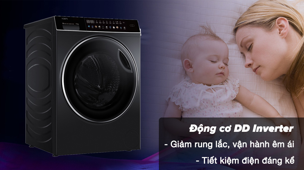 – Trang bị động cơ DD Inverter: Giảm thiểu tối đa rung lắc và độ ồn của máy giặt trong suốt quá trình vận hành, đồng thời sử dụng điện tiết kiệm mà vẫn mang lại khả năng giặt sạch tối ưu cho quần áo.