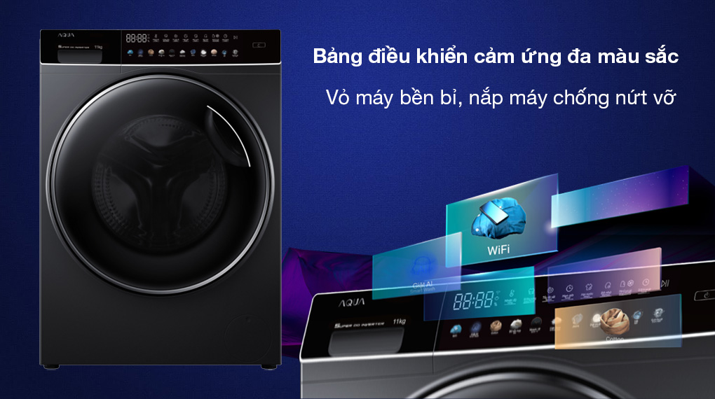 Tóm lại, máy giặt Aqua AQD-DDW1100J BK có kiểu dáng hiện đại với bảng điều khiển cảm ứng nhiều màu sắc sinh động, thân thiện cho người dùng. Sản phẩm đáp ứng nhu cầu giặt giũ cho gia đình trên 7 người, nhất là phù hợp với người dùng bận rộn và muốn sắp xếp công việc giặt giũ đơn giản hơn qua việc điều khiển bằng ứng dụng Haismart trên điện thoại.