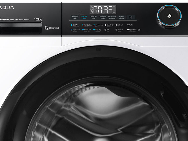 Máy giặt Aqua AW12-BP4959U1K(W) được trang bị nhiều tiện ích thông minh như kết nối Wifi qua ứng dụng Haismart, khóa trẻ em và chức năng hẹn giờ giặt.