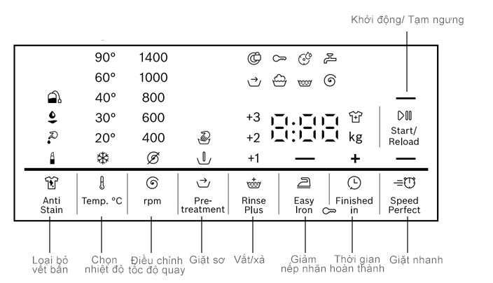 Chức năng Reload giúp người dùng dễ dàng thêm hoặc bớt quần áo trong chu trình giặt mà không làm gián đoạn quá trình. Chỉ cần nhấn nút Reload và mở cửa máy để thêm đồ giặt bị bỏ quên.