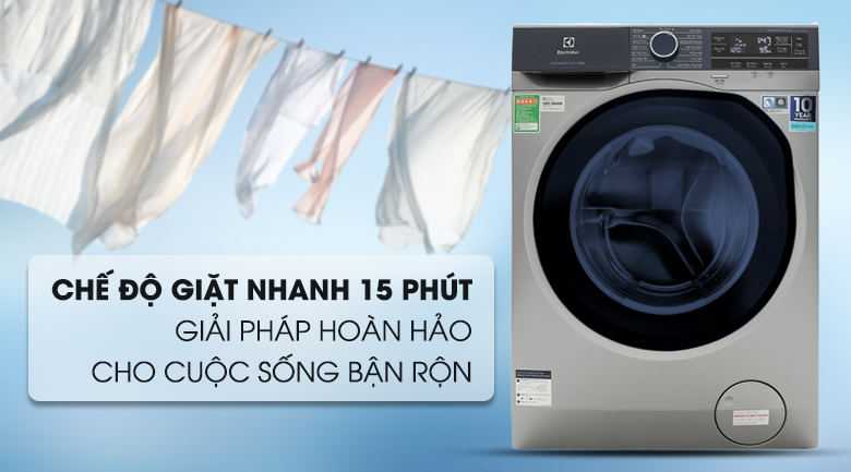 Để có thể giúp bạn giặt quần áo nhanh chóng trong những trường hợp gấp gáp, thì chiếc máy giặt này đã được tích hợp thêm chế độ giặt nhanh chỉ trong 15 phút, giúp bạn nhanh chóng giặt sạch chiếc áo sơ mi hoặc khoảng dưới 2 kg quần áo hàng ngày chỉ trong tích tắc, vô cùng tiện lợi.